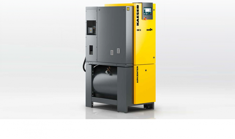For the SX, SM and SK Series there is the option for the aforementioned to be mounted on an air receiver vessel. Models are referred to with the prefix of AIRCENTER. I.e. AIRCENTER 13, AIRCENTER 22. The AIRCENTER 13 is shown.